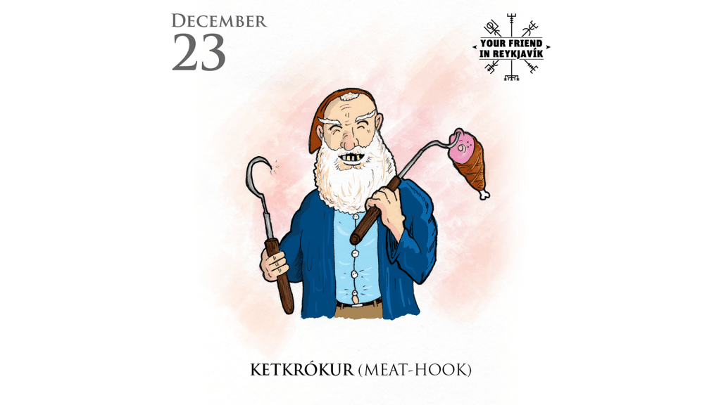 Christmas culinary traditions vary significantly between families, but there is one common central feature to most festive feasts, and that’s the meat. In Icelandic folklore, however, this was the target of thievery from the twelfth and penultimate Yule Lad, Ketkrokur, or “Meat-Hook.”
