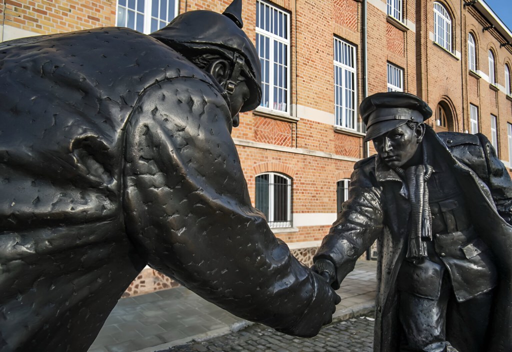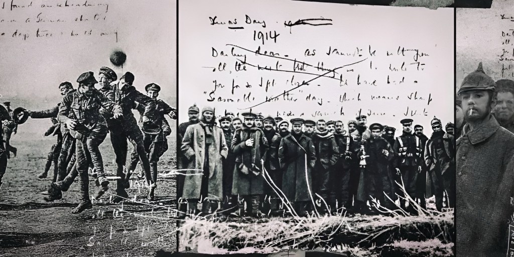 World War I was barely six months old when on Christmas Day a strange occurrence happened. Without a formal treaty being signed peace happened in the trenches. English and German soldiers first popped their heads up then walked towards each other.